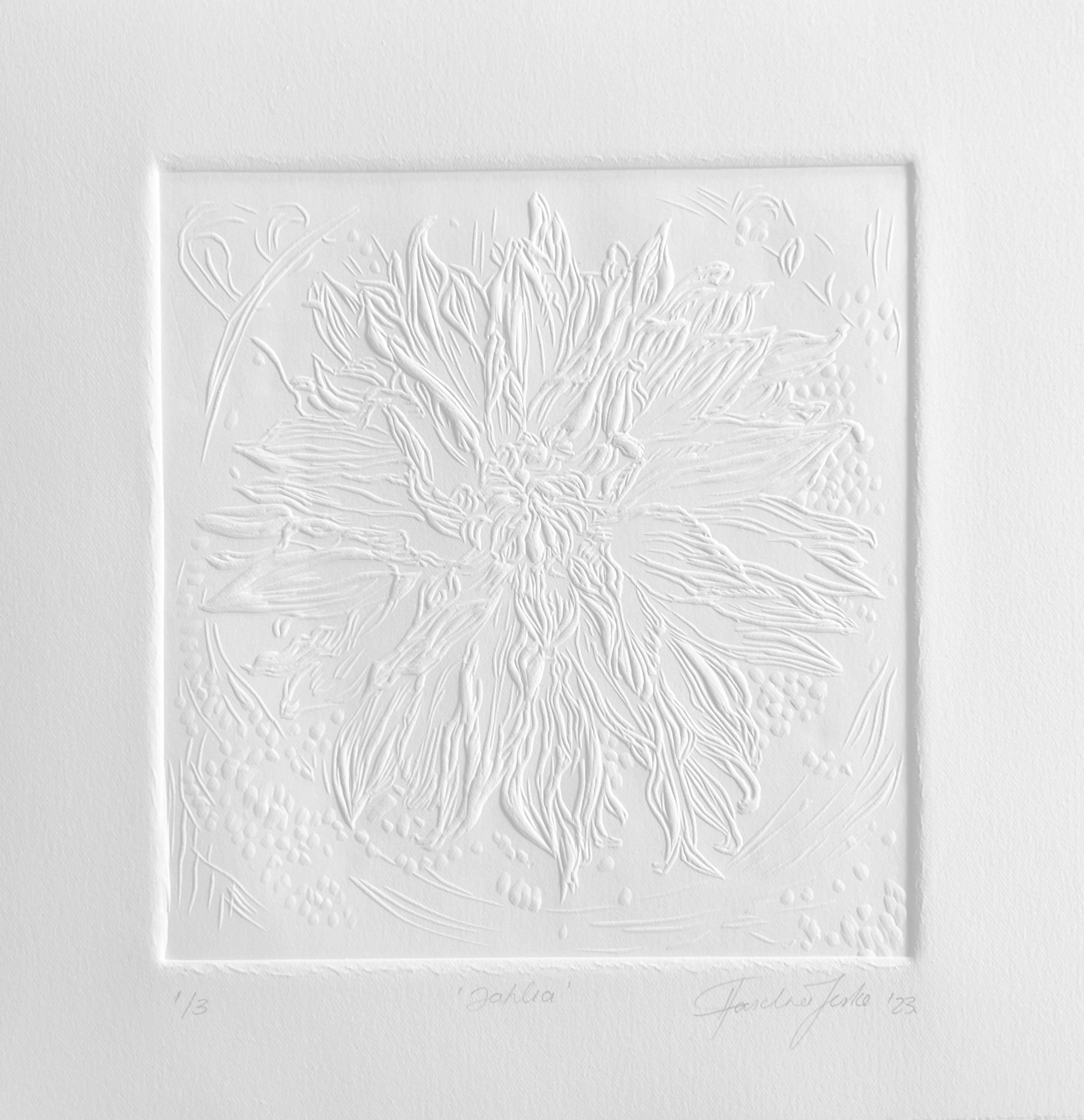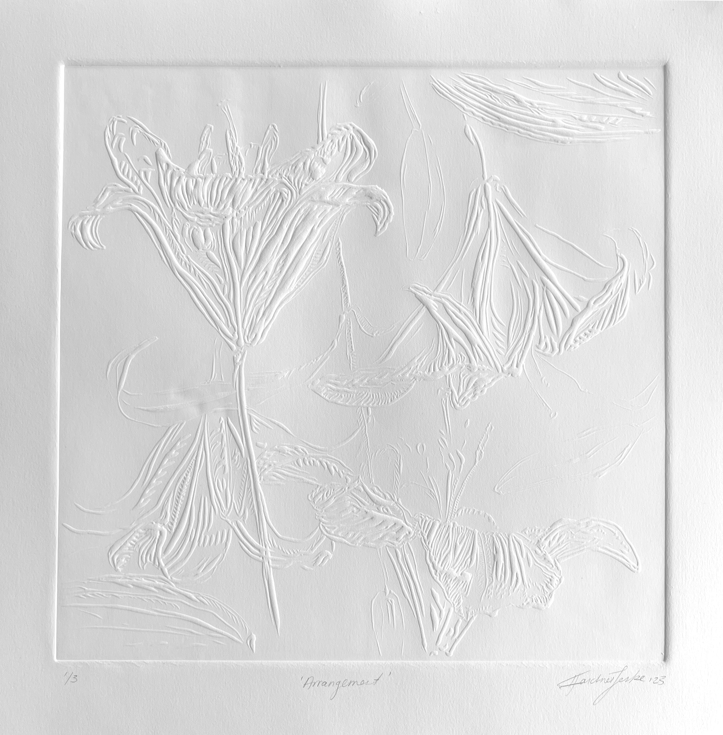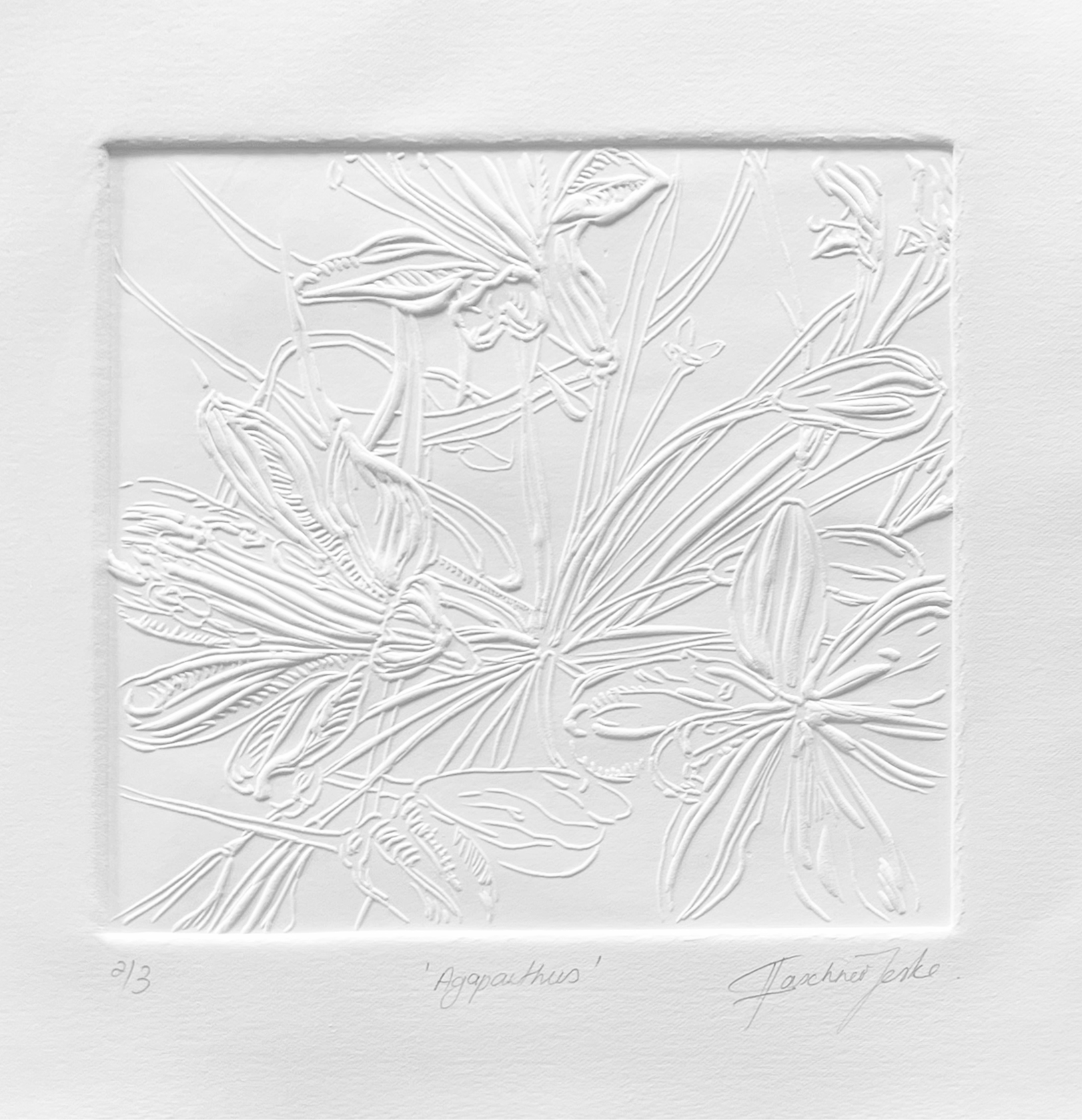 Dry embossed relief on Fabriano 340 x 340 mm, framed R 5,681.00 Price includes artwork only. Shipping, crating, and insurance will be quoted separately. The work will be available for shipment after the conclusion of the exhibition, from 22 February onward.