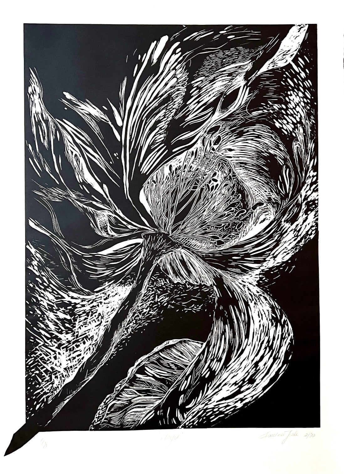 Lino cut on Hahnemühle 1100 x 1500 mm, framed R 50'830.00 Price includes artwork only. Shipping, crating, and insurance will be quoted separately. The work will be available for shipment after the conclusion of the exhibition, from 22 February onward.