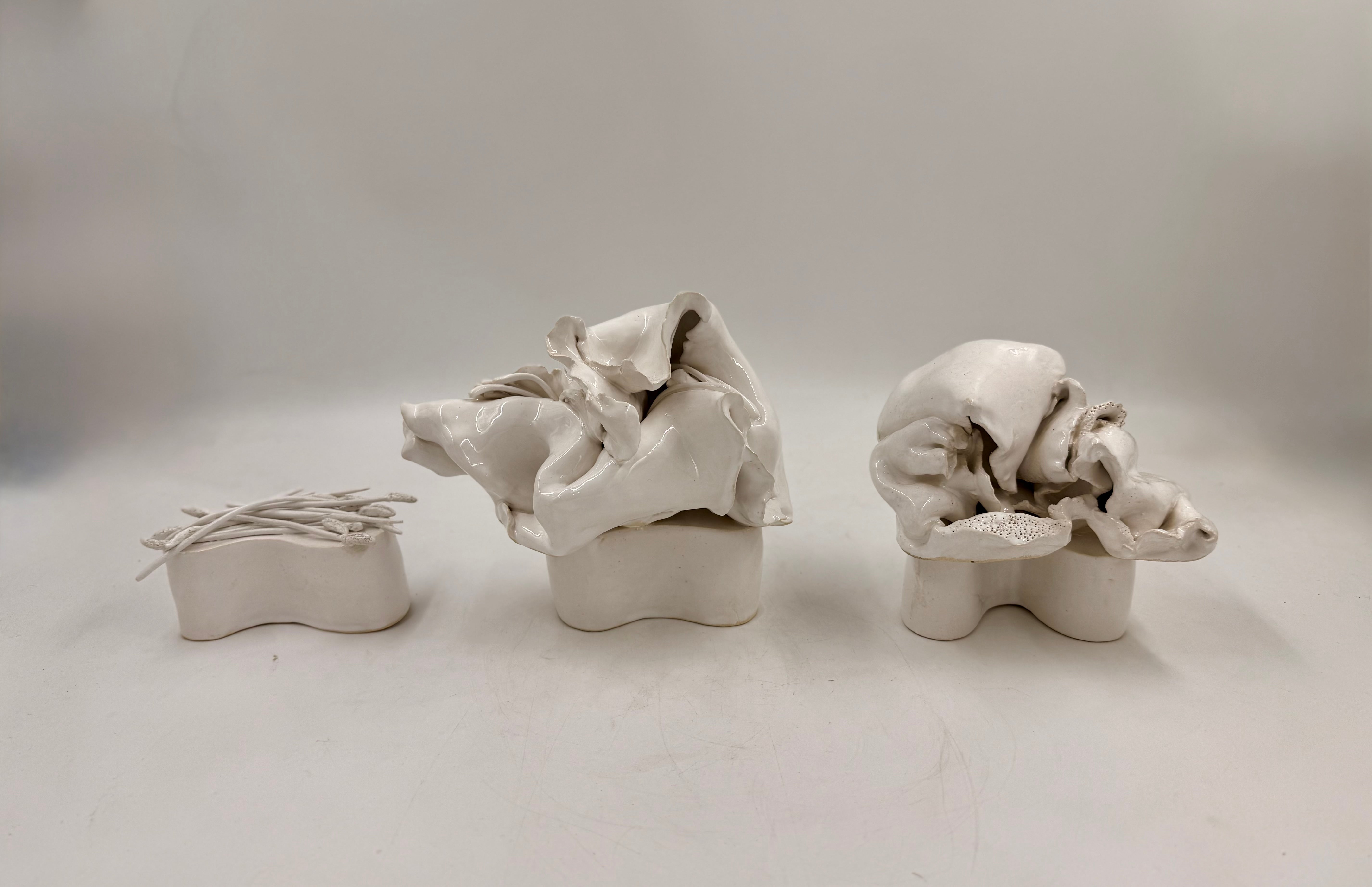 White glazed ceramic 132 x 75 x 64 mm 182 x 147 x 152 mm 145 x 109 x 134 mm R 67,275.00 Price includes artwork only. Shipping, crating, and insurance will be quoted separately. The work will be available for shipment after the conclusion of the exhibition, from 22 February onward.