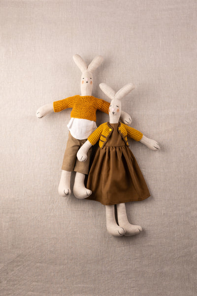 La Motte Plaashaas R650.00 The most charming Male and Female soft toys, dressed in neutral shades to suit any nursery. 54cm in length