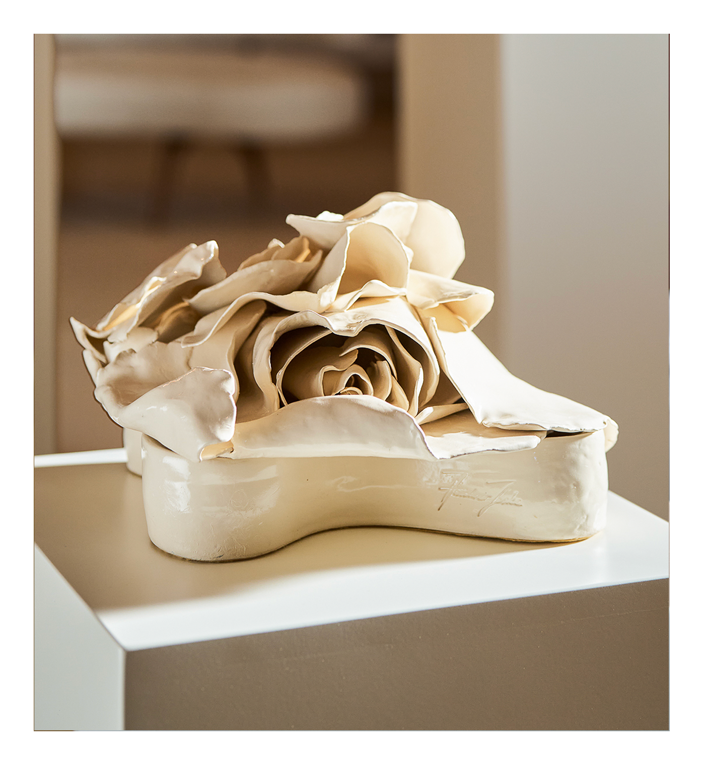 White glazed ceramic 340 x 220 x 220 mm R 47,840.00 Price includes artwork only. Shipping, crating, and insurance will be quoted separately. The work will be available for shipment after the conclusion of the exhibition, from 22 February onward.
